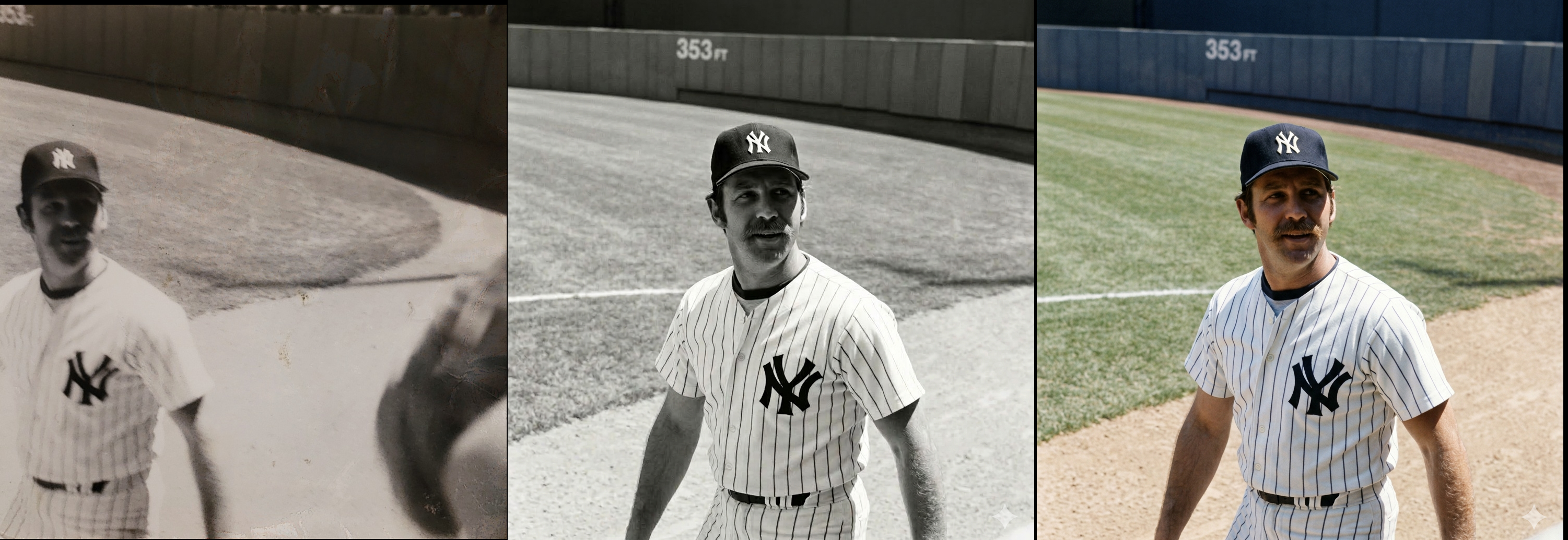 But my three images of Thurman Munson? They're all the same moment, they differ only in the tools used to reveal it. In most contexts, there is no meaningful change made by these manipulations.